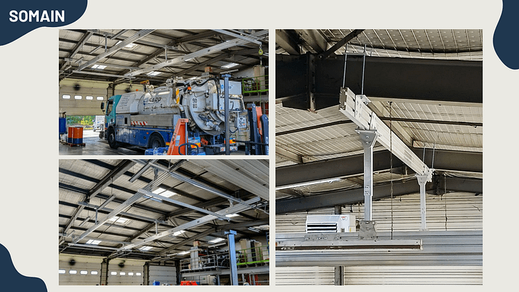 La contrainte ? Les dimensions des camions peuvent varier, ce qui nécessite une ligne de vie sur rail mobile.